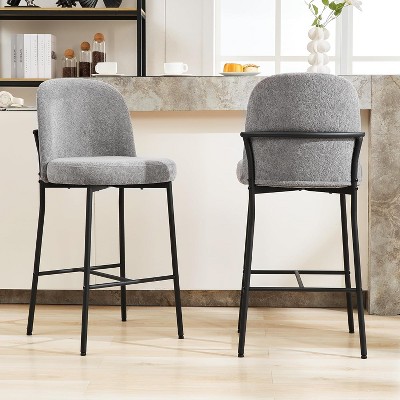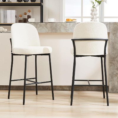 Modern upholstered bar stools will enhance and brighten up your bar or dining area. Featuring a durable ergonomic design, this set of 2 bar stools features a comfortable foam seat upholstered in soft, skin-friendly teddy fabric and filled with 3.54" thick high-density foam with a curved back to provide a comfortable touch. Sleek black metal legs, elegantly contoured backrest and built-in footrest make these stools both stylish and comfortable.