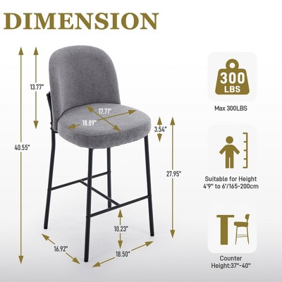 - 【Ergonomic Design】The counter height bar stools are ergonomically designed, adopted an upholstered boucle fabric seat and back let you sit for a long time without getting tired. You can lean against the back of the barstool and put your legs on the footrest for a better sitting position.