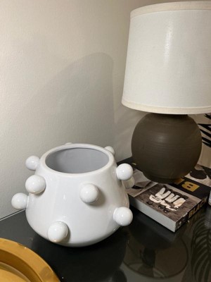 [This review was collected as part of a promotion.] This flower pot is very cute in person. The glossy white finish looks clean and modern and the little bubble details make it fun and unique. It also has a drainage hole, which I love because it’s actually functional and not just decor. I haven’t even added a plant yet, but it still looks adorable sitting on my table and instantly makes the space feel more styled. Great quality ! Would definitely recommend