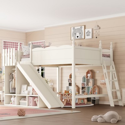 Merax Wood Queen Size Bunk Bed with Ladder and Trundle, Wood