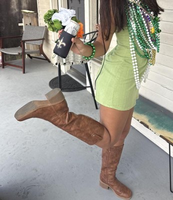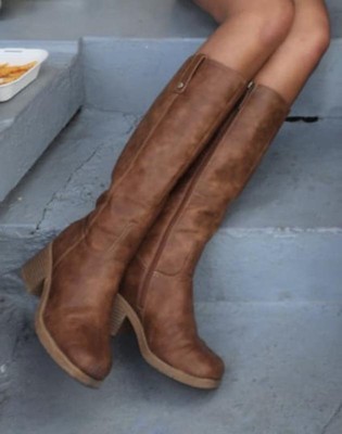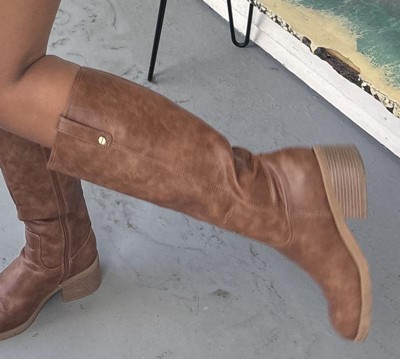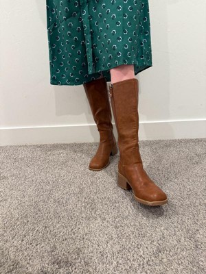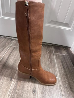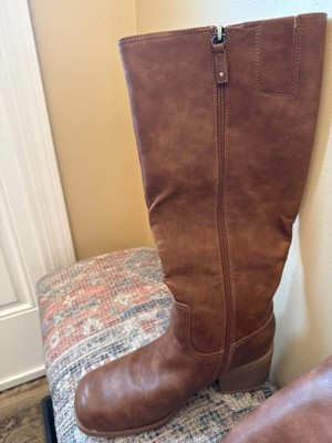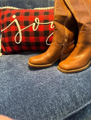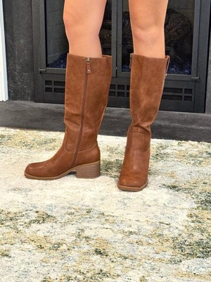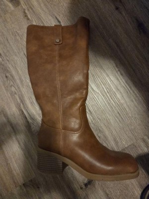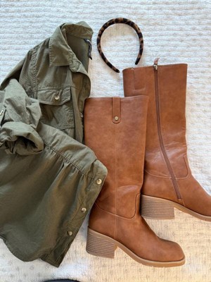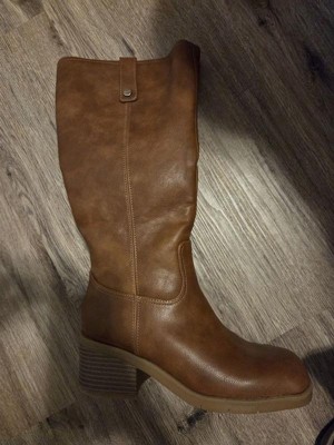 • STYLE: Tall boots with western-inspired stitch details, rivet detail, square toe, and 2 1/4 inch stacked block heel with blow TPR outsole