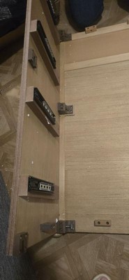 This dresser looks great but has some issues. Assembly was very challenging because the components intended to make it have easy assembly were not aligned and therefore required significant force to get the pieces to line up enough to tighten screws. Even then, we were only able to tighten two of three screws on each side. Besides the assembly issues, the drawers are quite sticky and difficult to close completely. They do not slide nicely and they are not very deep. I would've returned the product if the return fee wasn't so expensive.
