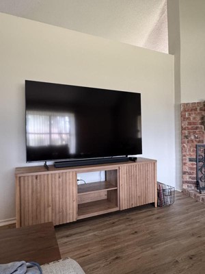[This review was collected as part of a promotion.] Love the rough wood look! So natural looking. Great amount of storage and the perfect size for my TV. I’m in love
