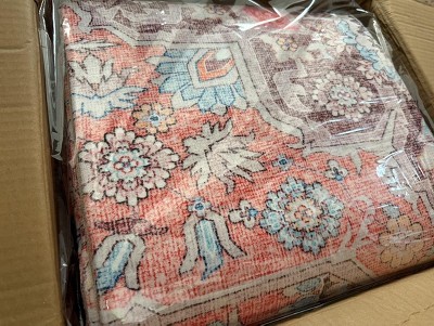 Very disappointed. Looks nothing like the photo, is orangey and barely pink. Also is super thin and wrapped in a small box. Pattern is cheaply printed on the rug. Returning.