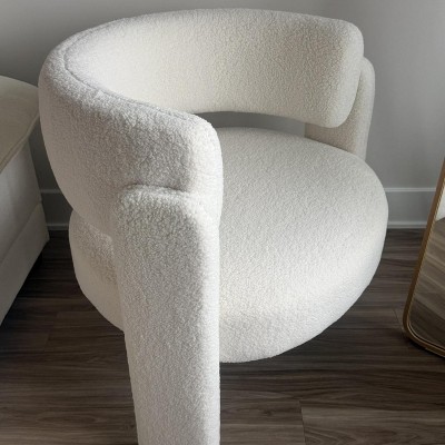 I recently added this white accent chair to my space and it instantly elevated the look of the room. The design is modern and elegant, and the neutral white color makes it easy to style with different decor. The chair is very comfortable and feels sturdy and well-made. The fabric looks high quality and gives the space a clean, sophisticated feel. It works perfectly as both a statement piece and a functional seat. Overall, it’s a beautiful accent chair that adds style and comfort to the room. Definitely a great addition to any living space.