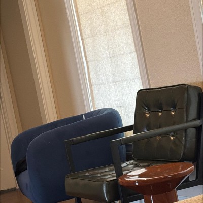 Very modern and nice looking. Plenty of room for bigger people to fit comfortably! Love the color absolutely beautiful