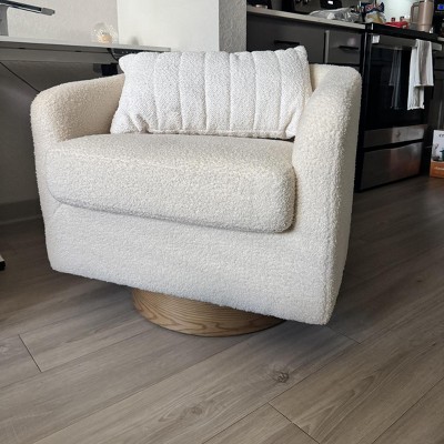 VINGLI 360°Swivel Accent Chair with Engineered Wood Base and Removable Cushion for Living Room, Bedroom, Teddy-khaki