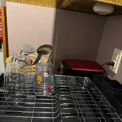 I really like this dish strainer rack. It’s more different than the other’s. you can fit more and it has a rack on the side that pulls out, you can put your cutting boards in extra that you can put your wine glasses or extra cups and it’s rust resistant and it’s clean, you can clear it much easier than the others. In my opinion I would recommended thank you, target I really like it a lot.