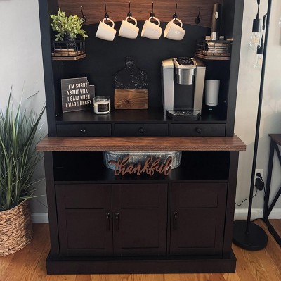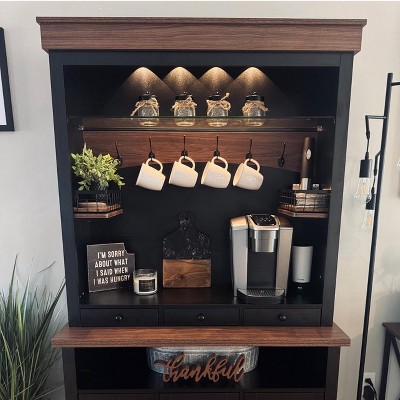 DobleePy 72" Tall White Farmhouse Coffee Bar Cabinet with LED Lights, Adjustable Shelves, 3 Drawers & Doors, Ample Storage for Kitchen & Dining