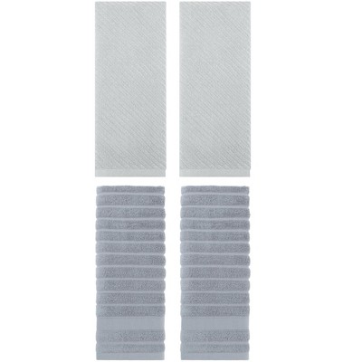 REGALWOVEN 3 Pack Solid Striped Cotton Hand Towels for Bathroom, Kitchen, Gym 14" x 30" Grey
