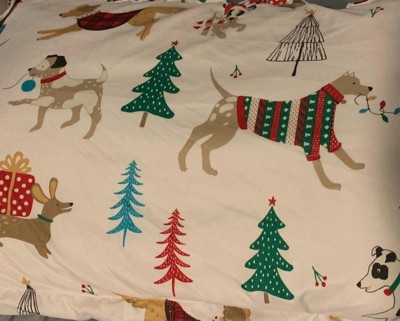 • Levtex JINGLE PAWS COMFORTER SET: Add a festive and whimsical touch to your bedroom décor with the Levtex Home Jingle Paws Comforter Set. Featuring a comforter. and a matching sham, this delightful set showcases playful pups in scarves and antlers frolicking among holiday trees, cabins, and presents. Crafted with a soft polyester front and back and filled with cozy polyester fill, this bedding brings the holiday spirit to life in your home with every detail.
