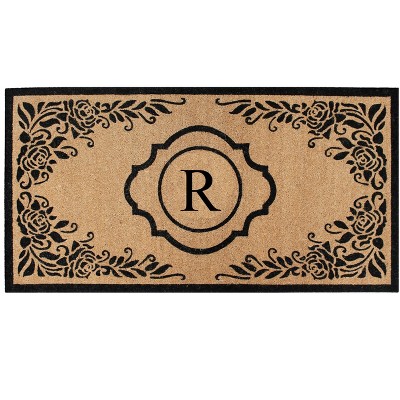 A1HC Natural Coir Monogrammed Outdoor Entrance Door Mat 30X60, Anti-Shed Treated Durable Doormat Letter R