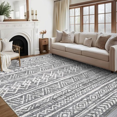 Washable Rug 5x7 Modern Abstract Area Rugs for Living Room Soft Faux Wool Bedroom Rug Non Slip Backing Indoor Carpet Low Pile Non-Shedding Rugs