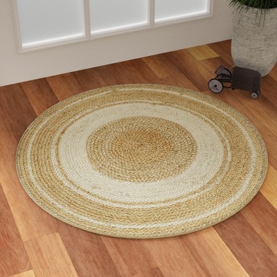 Maxax Round Jute Rug,Braided Area Rug,Hand Woven Natural Rustic Rug for Kitchen, Living Room and Bedroom-4.00 X4.00 FT