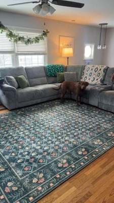 Meadow Floral Washable Rug/Teal