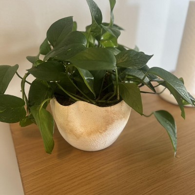 Storied Home 7.25 Inches Stoneware Ruffled Planter with Sand Finish and Reactive Glaze, Holds 4 Inches Pot, White