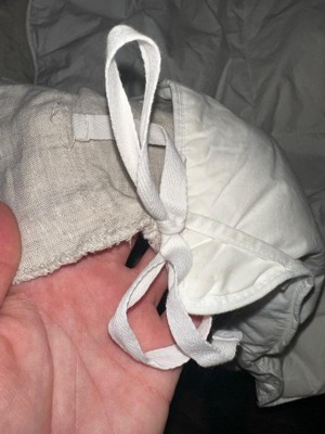 Very nice lightweight material that seems comfortable for all weather. The material is very soft and could be used alone or perfect for a duvet filler. It has stitched squares to keep the down fill evenly distributed. There’s nice sewn loops for attaching to a duvet. This is perfect for fall-spring weather!