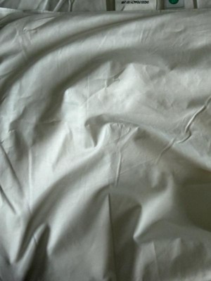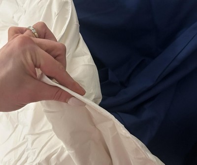 To quote my husband, “this feels like sleeping with a prop.” The blanket itself was incredibly noisy with any movement we made while trying to fall asleep. It also felt strangely stiffy - which might wear out with a few washes, but we haven’t gotten that far yet. I will say, I did appreciate how there were not pokey bits from the down. I’ve had that concern in the past. Temperature wise it was fine. A little heavier than I’m used to, but we didn’t get overheated. It just felt kind of low quality.