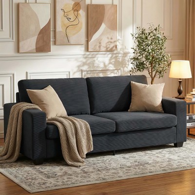 84" Upholstered Apartment Sofa, Modern 2-Seater Corduroy Couch with Wide Arms and Supportive Cushions for Living Room - Grey