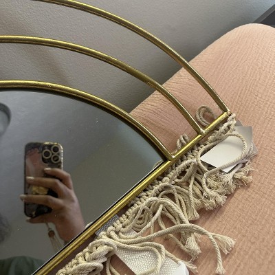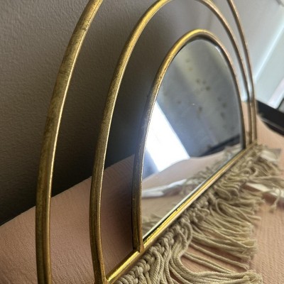 Boho-Chic Inspired Wall Mirror Decorative with Fringe Accent - Arched Wall Mirror for Bedroom, Bathroom, and Dorm Styling - 17", Gold