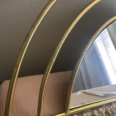 Wanted to love this mirror but can’t ignore the poor craftsmanship. The gold rubs ofd with every touch. It arrived appearing ultra distressed because of all of the gold that has already rubbed off. The size is also misleading by the stock photos. I thought this would be a great mirror for over a nursery crib. Much smaller. Instead it’s more proportionate to the changing table pad. The actual glass mirror is poorly fitted into the frame. Maybe worth $15 at dollar store. Not the quality expected from target or an affiliate.