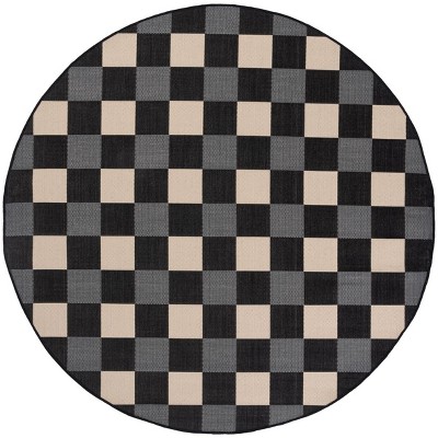 Courtyard CY6442 Power Loomed UV Resistant, Stain Resistant, Non-Shedding Indoor/Outdoor Area Rug - Black/Beige - 6'7" Round - Safavieh