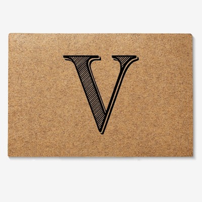 A1HC Natural Coir & Rubber Monogrammed 30"X60" Door Mat, Heavy Duty, Non-Slip Outdoor Entry Doormats, Letter V