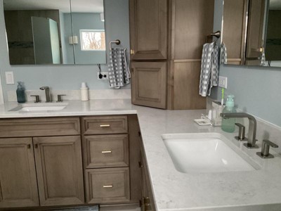 We absolutely love the parallel widespread sink faucet. It looks great in our bathroom and matches the wall mount tub filler perfectly!