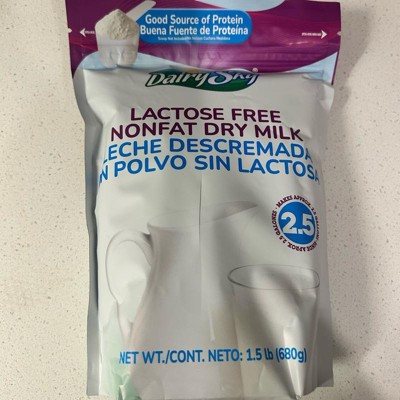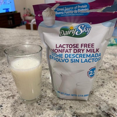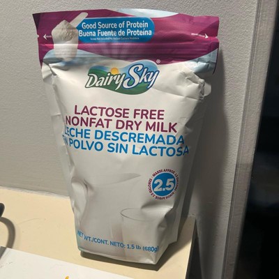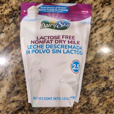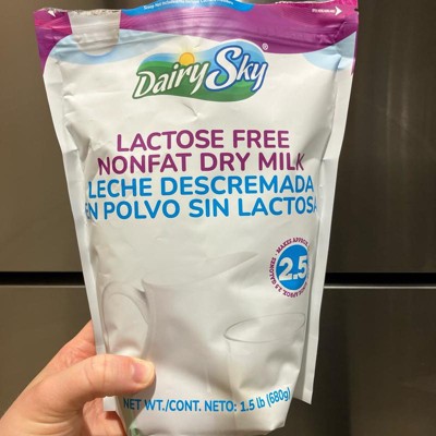 Enjoy convenient, pantry-ready DairySky® Lactose-Free Nonfat Dry Milk in a generous 1.5 lb (680 g) pouch. The fine powder dissolves easily in hot or cold water for a smooth taste and reliable results in drinks, cooking, and baking.
