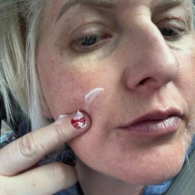 The last 6 months I've really been focusing on skin care now that I am in my late thirties. I have a skin care ritual of a deep cleanse, toner, serum, and moisturizer. I did that same routine today with this and was surprised by the results. The texture and smell reminds me of a different moisturizer that I use, but I was surprised with the sticky results of my skin. It's been a few hours and there's still a bit of stickiness. The areas that I threw a little bit of blush and powder on, don't have that at all! So I definitely can't use this at night, but I think it's actually going to work great for my makeup routine.