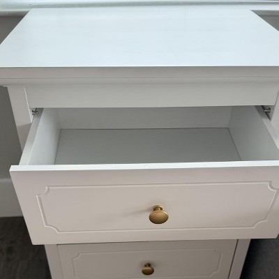 Upgrade your bedroom or living room with this elegant 3-Drawer Nightstand. Made of MDF and solid wood, it’s sturdy and stylish with a clean white finish that fits any décor. The tabletop holds up to 48 kg (105.8 lbs), while each drawer supports 6 kg (13 lbs), giving you ample space to keep essentials organized.