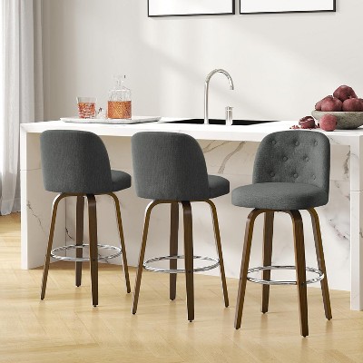 NEWLAYOUT Counter Height Bar Stools Set of 3, 24" Height Barstools for Dining Room, Upholstered Bar Chair for Kitchen Island, Gray