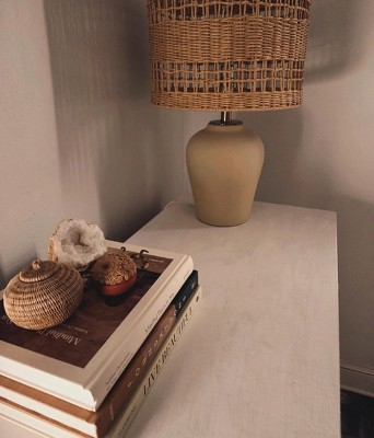 Maxax Boho Style Ceramic Rattan Table Lamp For Living Room/Bedroom/Entryway Console/Decorative Supplements With Rattan Accent