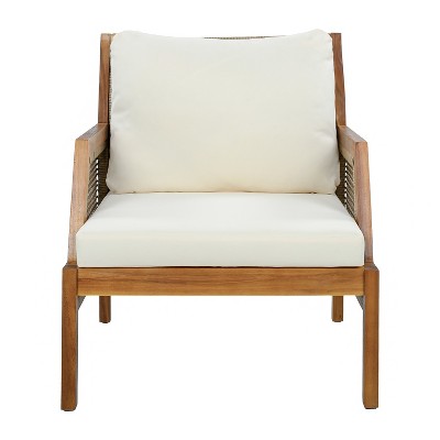 Christopher Knight Home Grath Patio Mid-Century Modern Acacia Wood Textilene Club Chair with Thick Cushion, Teak/Beige, Single