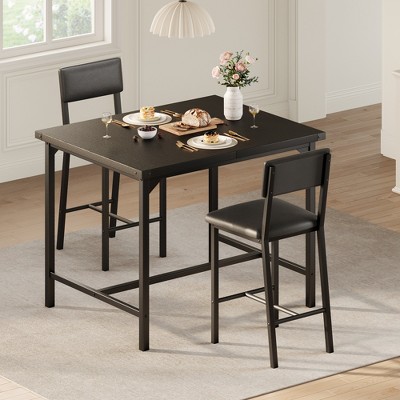 Dining Table Set for 2 w/Counter Height Table & 2 Upholstered Stools,3-Pcs Table Set with Corner Protector,for Kitchen Room,Apartment,Pub-Black