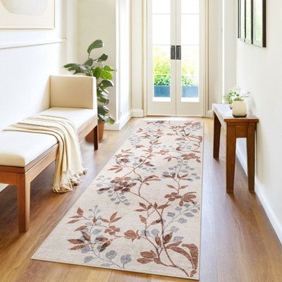 Washable Vintage Medallion Area Rug Non Slip Backing Stain Resistant & Low Pile Carpet for Bedroom Living Room Dining Room Bedroom, Beige 2*6Ft