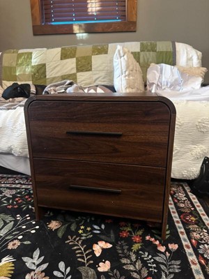 LuxenHome 21.5" Mid-Century Modern Nightstand for Bedroom , Walnut Finish Wood Accent End Table with 2-Drawers and Rounded Corners Brown
