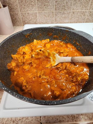 [This review was collected as part of a promotion.] I received a jar of vindaloo sauce for my review. I’m the only one in my house who loves vindaloo, so I made this for my lunch. I used chicken thighs - I simply combined the chicken and the sauce in a pan and let it simmer until the chicken was done. I did not add salt as I assumed the sauce would have plenty of salt in it and I was correct. I did add a drop of heavy cream at the end of cooking as I know some vindaloo recipes include it. Overall impression: this sauce is a tomato base, with a variety of spices. It is nicely flavorful, although it is not as spicy as the vindaloo I usually eat in an Indian restaurant. I like vindaloo but I am not an expert in how it should taste - more that this tastes good to me. Spice level: mild-medium. If you are a zero spicy kind of person, it might be more than you like. I like very spicy food and I would call this medium spicy at most. (It was warm and flavorful but didn’t make my nose run!) Ease of use: can’t get any easier than a dump and simmer. Love that part. Would I buy it again? I would. I liked this a lot and it made meal prep really easy. Two ingredients and done.