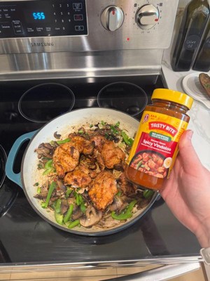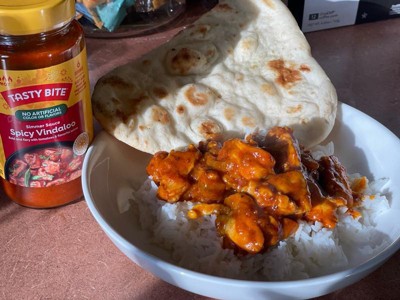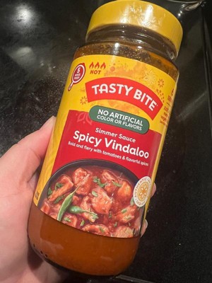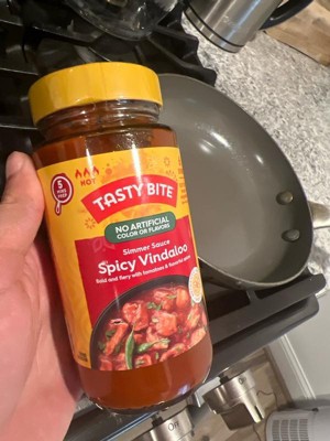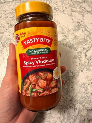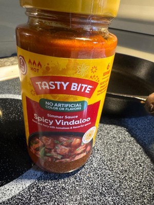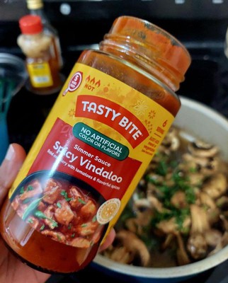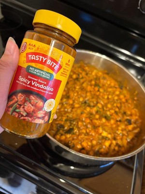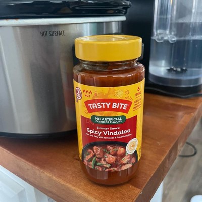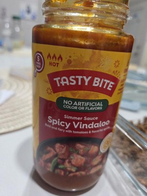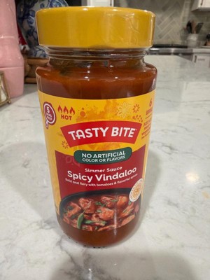 [This review was collected as part of a promotion.] This Tasty Bite spicy vindaloo simmer sauce is great. The smell and taste is amazing and has a good kick of heat. The texture is smooth and it’s easy to prepare. It’s so quick and easy.