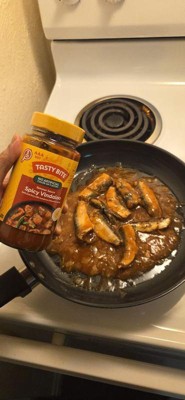 [This review was collected as part of a promotion.] It's delicious, I used the sause with sautéed mushrooms, but it can be use with any other vegetales and proteins. It tastes good, and within minutes you can have an easy dinner. The sause has good consistency, it has a sweet taste with a little citrusy hint, it's not spicy at all. Everyone in your family can enjoy easy and flavorful meals using this sause.