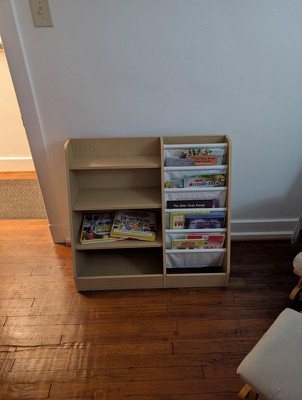This bookcase is gorgeous. It's modern and sleek and so practical! We love the two different sides, the shelves can be used for stuffed animals and toys while the book slots can easily display books. Or in our case we are using the book slots for our younger kid's picture books, and the bookshelves for our older kid's thicker books. So glad we got this, it is really going to enhance their room and organize their books so beautifully! We are so excited to fill it up!