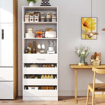 COZONY 72'' Tall Kitchen Pantry Cabinet with Drawer and Adjustable Shelves, Farmhouse Storage Cupboard for Dining Room or Laundry,White