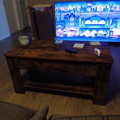 FDW Lift Top Coffee Table with Hidden Compartment and Storage Shelf Wooden Lift Tabletop for Home Living Room Reception Room Office,39.4",Brown