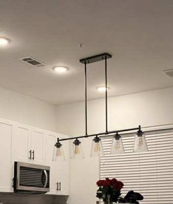 [This review was collected as part of a promotion.] Wow this light fixture is beautiful! I love the matte black finish. It will look perfect over my kitchen island. It does a great job of lighting up the space and on a dimmer I can create mood lighting or be as bright as I need it to be.