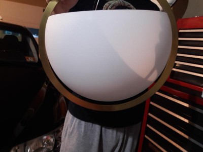 [This review was collected as part of a promotion.] I was so excited for this fixture, however, despite being incredibly well-packed (big pieces of styrofoam and plastic), the half-globe was scratched all the way around the bottom. It was impossible to tell until after we installed it and turned the light on - then the light scratches because dark lines. I really don't think there is any way it could have been damaged in this way from shipping. When we took it down to see if we could try to buff them out, the whole globe broke in my husband's hands. Not great quality.