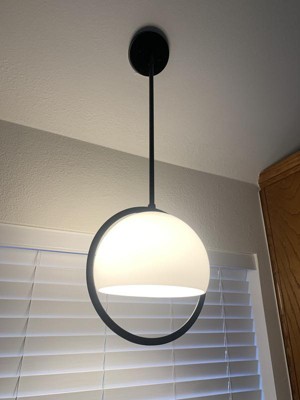 [This review was collected as part of a promotion.] This designer light pendant is very modern looking. Love the style love that it is black goes well in my room. The frosted glass gives it a nice look. I put this in a bedroom and looks very elegant. Definitely recommend