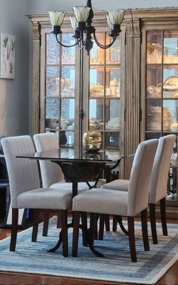 • Modern Parsons Style – Sleek silhouette with striped linen fabric and black wooden legs adds elegance, making it a perfect fit for dining rooms, kitchens, or cafés.
