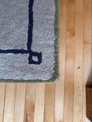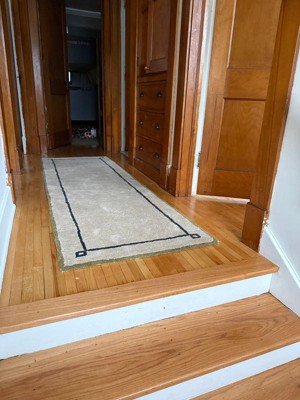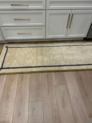 [This review was collected as part of a promotion.] The rug had me at 'Nate Berkus' and did not disappoint. 100% hand knotted wool and it looks dar more expensive than it cost. The beige is actually more of a camel color and the stripe is charcoal gray vs black which was a pleasant surprise. The olive green border is *chef's kiss*. Based on my purchase, I highly recommend the purchase of this or any other rug in this collection.