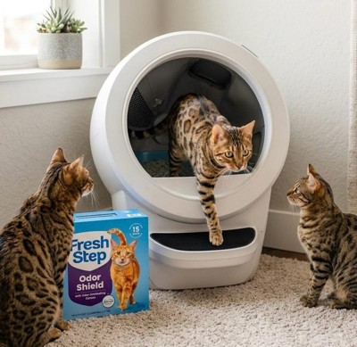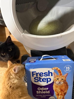 [This review was collected as part of a promotion.] I have 3 indoor cats that all use an automatic litterbox. Even with an automatic litter box the quality of the litter matters. Fresh Step with odor eliminating carbon works great to control odors in my multi-cat house. My litter box is set to scoop 3 min after they get out and it clumps fast and keeps my house smells fresh. It tracks a lot less than my normal litter and there's little to no dust. It lasts about 2 weeks before we do a full change out.