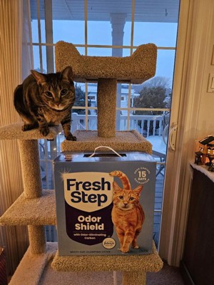 [This review was collected as part of a promotion.] I received Fresh Step Odor Shield cat litter for free from Influencer in exchange for my honest review. So far so good with my first few weeks trying out fresh step over shield. Every time I clean the little box, instead of a face full of bad smells, I am instead greeted with a much more pleasant sense now. Which makes sense because Fresh Step says it does not just mask odors, it eliminates them for up to 15 days and it uses a proprietary blend of clay, carbon and pneumonia black technology, along with a little bit of febreze fresh smell. I am mostly impressed with the results it will probably keep trying it out for a bit longer myself and recommend trying it too if like the idea of a face full of fresh instead of a face full of stink every time you clean up after your cat's